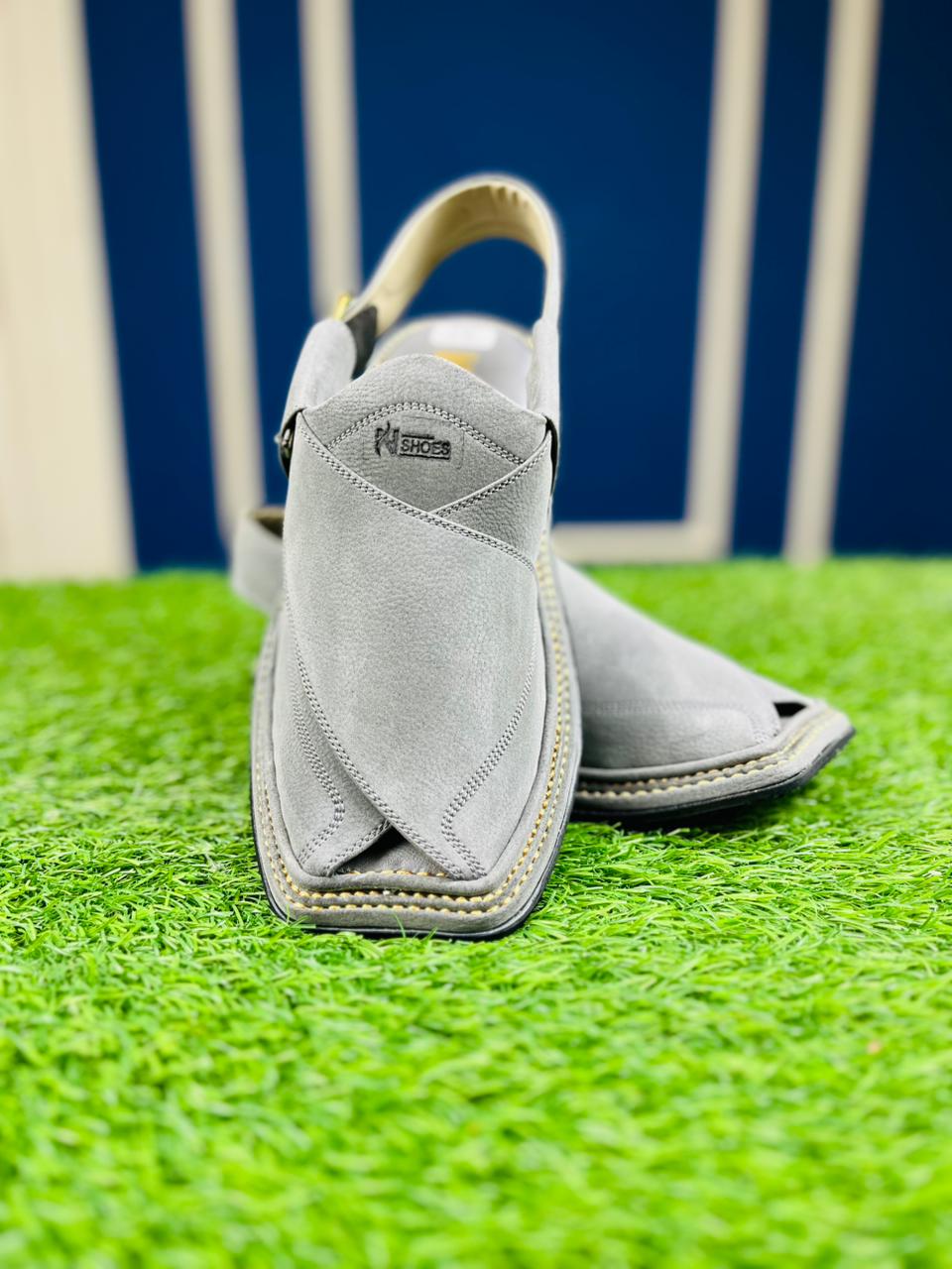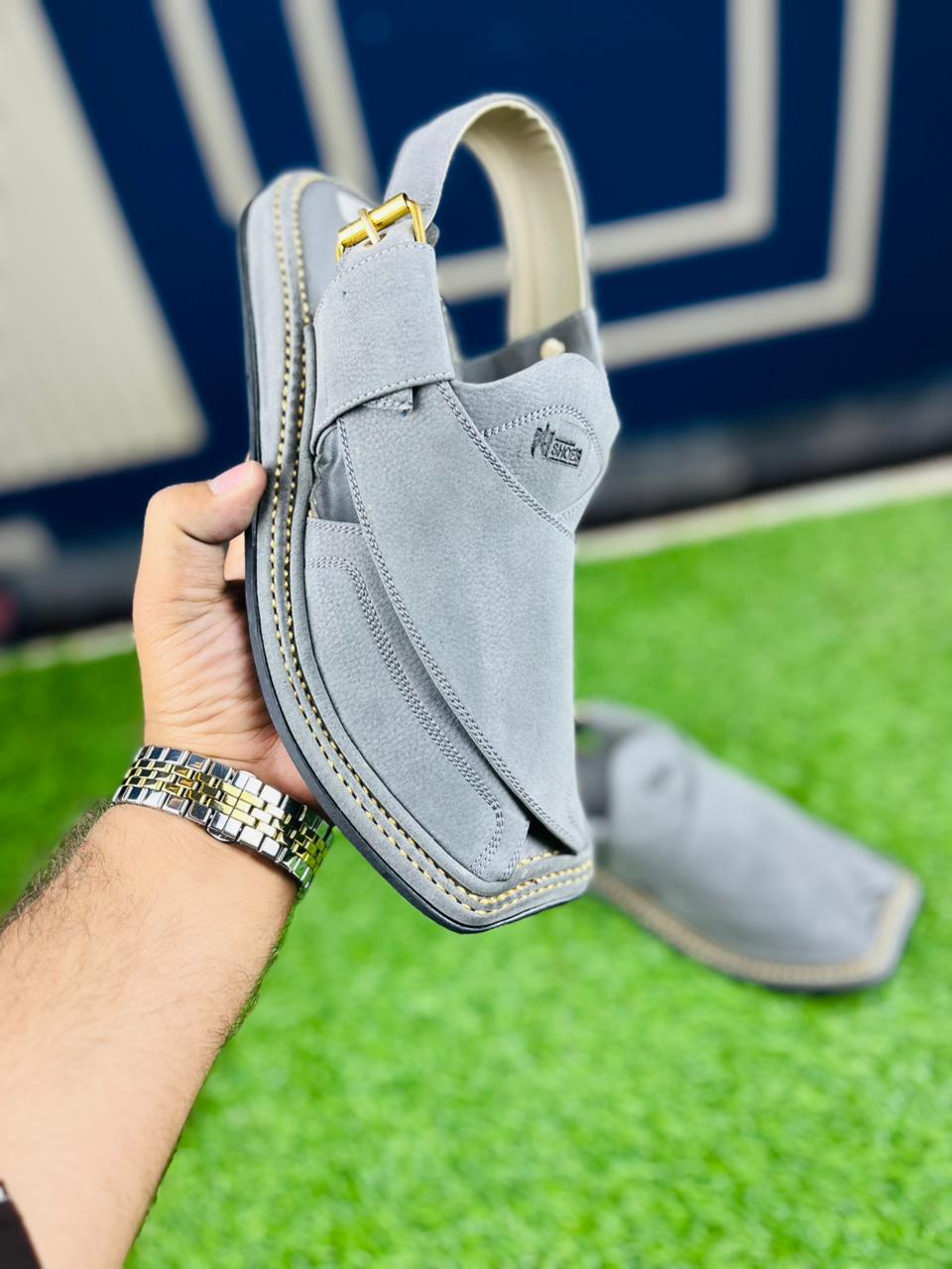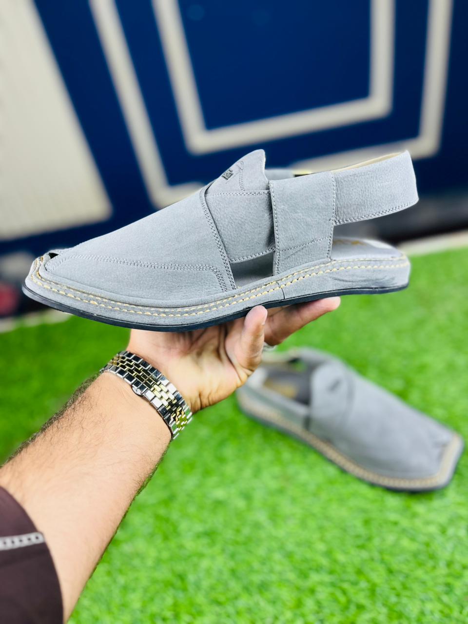 Redefine your traditional look with our Ash Grey Peshawari Chappal. This pair features a unique matte-textured finish that offers a soft, premium feel while maintaining a rugged, masculine silhouette. The neutral grey tone makes it incredibly versatile, perfect for pairing with dark-colored Shalwar Kameez or even denim. Hand-stitched with precision and fitted with a comfortable sole, this is the ultimate choice for the modern man this Eid.